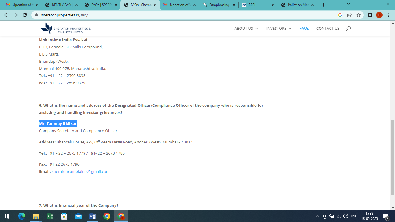 | Policy on Materiality of Events | 535.97 KB | |